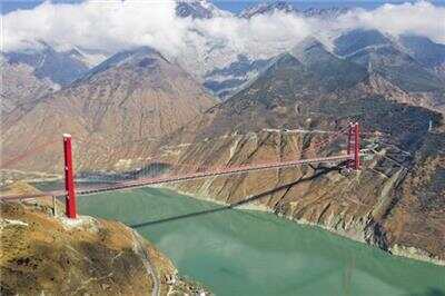 远眺雅康高速公路泸定大渡河兴康特大桥 新华社发 |