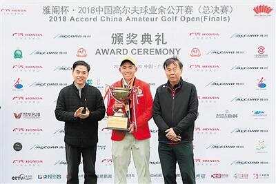 男子组中表现最抢眼的陈顾新在决赛轮遭遇开局不利,前9洞因受恶劣天气影响出现多次失误,在第1、2、3号洞接连吞吃柏忌,接着在第8号洞又吞下1双柏忌,前9洞打下来遗憾地只捉下2小鸟。但转场后陈顾新及时调整心态及打球策略,发挥出了正常水平,在第18号洞更以一记漂亮的小鸟球完成赛事,最终以290(+2)杆成绩锁定男子组冠军宝座,成功卫冕。 女子组的冠军争夺战可谓毫无悬念。韩国女将Sohn Ye Been的成绩遥遥领先对手,其在前9洞抓下女子组唯一一只老鹰,同时也收获2小鸟1柏忌,可谓稳稳地捧起女子组冠军奖杯。中国小将张玥本次比赛发挥不错,最终以225(+9)杆成绩夺得亚军。中国小将邓晶帆以227(+11)杆的成绩获得女子组季军。 陈顾新及Sohn Ye Been在颁奖典礼上首次披上“红夹克”,为他们的业余生涯留下了浓墨重彩的一笔。作为总决赛男女冠军,他们还将直接获得直通2019年中国公开赛/2019年中国女子公开赛的正赛资格。
