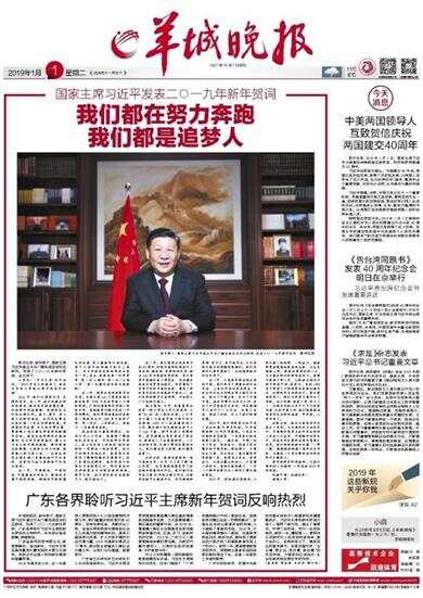 羊城晚报讯 新年前夕,国家主席习近平通过中央广播电视总台和互联网,发表了二一九年新年贺词。广东各界聆听习近平主席的新年贺词后反响热烈,纷纷表示备受鼓舞,深感振奋。
