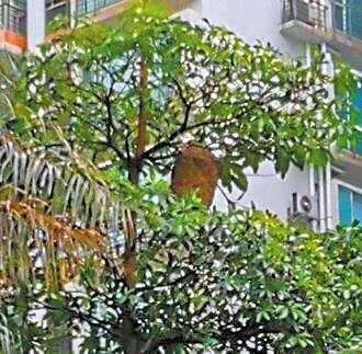 “小区有个超大马蜂窝‘定时炸弹’,多次反映无果,请羊城晚报帮忙”。近日,家住广州市天河区天源路君林天下小区的朱先生向羊城晚报反映,他所居住的小区花园里有一“两个篮球大小”的马蜂窝,多次向物业、居委会和广州12345政府服务热线反映情况,却没有得到及时处理。7日,有关消防部门答复记者,或可采取截掉树干的方式,但要物业同意。 现场 树上马蜂窝大似灯笼 “去年9月份左右我就发现这个马蜂窝了,当时只有拳头大小,我们都没在意。等到后来再看时,已经长成篮球大小了,我们就赶紧联系物业反映情况,但几个月过去了,马蜂窝长成两个篮球大小了,还没来人处理,这给我们带来很大安全隐患。”朱先生说。 记者来到了君林天下小区B1、B2栋之间的小花园,在B1栋入口处的石板小路上抬头,就看到了三四层楼高的一棵瘦高树上“结”出的马蜂窝,目测宽二三十厘米,长三四十厘米,远看好似一个大灯笼。该树1.5米左右的位置贴有一张温馨提示:此处有蜂窝,请勿靠近。 记者观察发现,马蜂窝离最近的住户窗台约有七八米的距离,正下方就是小区住户进出必经的走道。“人不去招惹马蜂是没事的,但这个树很细,马蜂窝又很大,万一马蜂窝什么时候掉下来,后果不堪设想。”朱先生对这个“定时炸弹”很是担心。 李小姐正带着孩子在小花园的儿童娱乐设施上玩耍,该处离马蜂窝大树仅有10米左右的距离。她表示之前并没有注意到有马蜂窝,经记者提醒后去看,很是吃惊:“这么大啊!我从来没注意到,以后真的要小心了,万一掉下来就太可怕了!” 负责小区保洁的徐大爷告诉记者,去年10月份就发现这个马蜂窝了:“那会天气还热,还能看到马蜂飞进飞出,现在天冷已经看不到了。”徐大爷表示,小区保安也来看过,但树太高,马蜂窝太大,他们也没有什么办法,已经让物业联系消防了。 消防 马蜂窝已有处理方案 君林天下服务中心工作人员陈先生告诉记者,物业方面从去年9月份开始就多次接到业主们反映小区马蜂窝情况的电话,物业也曾两次向消防部门报告,“去年9月、11月消防都来过,他们想把它打下来,但当时天气还热,怕马蜂乱飞进住户家里,会有较大危险,就说等天气冷了,马蜂不动了再来处理”。基于现在广州的天气已经冷了,物业表示会再次联系消防部门。 1月7日,记者联系了广州消防支队汇景消防中队,执行中队长蒋越林告诉记者,由于马蜂窝位置有十七八米高,位置过高、过偏,水炮打不到、火烧不到、竹竿捅不到,目前消防中队给出的最好方案是将马蜂窝所在部位的树干截掉,“我们已经把这个情况跟小区物业说明了,现在就看他们是否同意这个方案”。 专家 马蜂窝宜及时处理 马蜂,学名“胡蜂”,体大身长毒性也大。广东省养蜂学会理事长罗岳雄告诉记者,近年来广州的胡蜂多了,这说明生态环境变好了。“城市绿化变好了,所以才会吸引胡蜂等昆虫来筑巢。胡蜂通常选择在树干、空调、屋檐底下营巢,马蜂窝不处理会越来越大,因此市民平时可以经常查看空调、阳台、屋檐底下,看看有没有马蜂窝,刚结出来的马蜂窝里面一般只有一两只马蜂,用剪刀剪掉马蜂窝就没事”。 针对君林天下小区的情况,罗岳雄建议请专业人员处理,同时提醒附近居民注意关闭窗户,不要骚扰马蜂窝。“天气冷的时候,不少马蜂会到草丛里越冬,还有部分会死掉,因此蜂窝里马蜂不多,适合处理”。