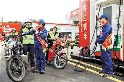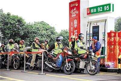 “返乡摩骑”在佛山龙山加油站排队免费加油 |