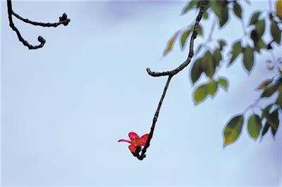 21日一早,细心的市民莫先生发现,广州沙面胜利宾馆旁边,一棵满树花蕾的红棉树上,一朵红棉花“抢闸”开放,火红艳丽,十分惊艳。莫先生相当惊奇:“往年的红棉都是春节后才开,今年居然开得这么早!” 不少路过的街坊驻足欣赏,笑称:“昨日大寒,今日就春暖花开,大寒是假的。” 羊城晚报记者 陈秋明 通讯员 莫铭 摄影报道