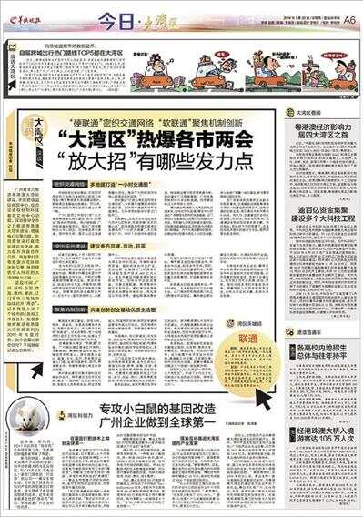 中国改革开放、经济腾飞的故事,在这里开篇;承载中国全面开放新格局的巨轮,即将在这里起航。 这里,是惊艳世人的“粤港澳大湾区”。这里,汇聚了香港、澳门、广州、深圳4座中心城市及另外7座各具特色的实力城市;这里,汇聚了近7000万人口,产生了10万亿GDP,经济总量已居全球四大湾区第二位。 从“珠三角”“大珠三角”到“大湾区”,改变的,绝不仅仅是一个称呼。这展示了对标全世界最高端经济片区的雄心,意味着对南中国过去40年经贸格局的全新升级。 “充满活力的世界级城市群”“具有全球影响力的国际科技创新中心”“‘一带一路’建设的重要支撑”“内地与港澳深度合作示范区”“宜居宜业宜游的优质生活圈”——以宏大战略定位引领,锐意进取、勇于探索,建成“国际一流湾区”梦想可期! 从今天起,羊城晚报开辟《今日·大湾区》版。我们将为您深刻解读“大湾区”为何及如何“对广东深化改革、扩大开放具有重要的里程碑意义”;我们将与您一起见证这片热土正在发生和即将发生的传奇故事。 粤港澳大湾区建设是“习近平总书记亲自谋划、亲自部署、亲自推动的重大国家战略”,如何推进如何落地?我们面临重大使命和全新命题。未来,我们会越来越多地讨论“打造大湾区1小时交通圈”“建设世界级机场群”“打造智慧城市群”……我们会更热烈地聚焦“‘广深港澳’科技创新走廊”“国际金融枢纽”……我们将努力探索“共建人文湾区”“构筑休闲湾区”…… 奋进的集结号已经吹响。致敬大湾区。致敬所有在这里奋斗的人们。 请关注腾飞的“粤港澳大湾区”! 请关注羊城晚报《今日·大湾区》! (姚志德)