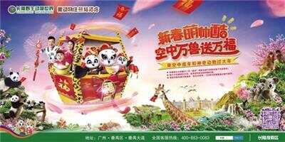 乘空中缆车转一转,瞰万兽送福过大年 乘上空中缆车转一圈,开启好运一整年。空中720°全视角,悠闲观览狮王家族,看长颈鹿、角马、斑马成群结队低头寻食水草,沿草原深处浩浩荡荡前行……长隆草原上演的新春动物大迁徙尽收眼底;乘空中缆车穿越山谷,空中看熊猫手剥竹笋,爬大树,尽显可掬憨态;远看百岁澳洲考拉UKI带领六代同堂大家族,惬意安享树梢暖阳,考拉妈妈淡定筛选嫩绿树叶,温柔哺育小考拉…..新春乘空中缆车深入东非大草原,与珍稀动物分享原生态气息的幸福生活。 逛熊猫福地,陪明星大熊猫过新年 新生国宝齐刷屏,福气临门迎新年。小朋友新春来长隆,和大熊猫“婷仔”过半岁生日,与红遍大江南北,新生子二代大熊猫隆仔母子新年互动。“一、二、三,笑”,来和全球唯一大熊猫三胞胎合照一张全家福。参加熊猫学堂,学习生动有趣的大熊猫科普知识,新春来长隆熊猫福地纳福,陪15位熊猫家族成员一起过大年。 大鼻猴严守丛林纪律,携宝宝给大家送祝福 长隆野生动物世界大树参天,每天瓜果嫩叶充足,全球珍稀动物大鼻猴家族跨越重洋,移居广州长隆一年有余,安逸生活让他们在新的一年继续开枝散叶。在2018年9月2日出生的中国第一只珍稀大鼻猴宝宝也即将满4个月了,小宝宝活泼调皮,长长的鼻子,萌趣可爱。新春期间,大鼻猴家族携中国第一只新生宝宝给中国游客拜年,祝广大游客新年快乐。 黑叶猴龙双胞胎太调皮, 学黑叶猴妈妈独特的育儿之道 黑中带金,金中渗黑的珍稀动物黑叶猴双胞胎保持着云南深山的生活野性,新春进入调皮好动年龄的双胞胎兄妹,时而相互依偎、相亲相爱,时而打闹嬉戏,调皮捣蛋;一会捉弄小伙伴,一会缠着妈妈玩,一会找饲养员妈妈拿吃的……一刻都不停。新年来长隆,看聪明的黑叶猴妈妈怎样管教调皮孩子,学一学黑叶猴妈妈的育儿之道。 坐茶壶列车次元穿越,玩转熊猫乐园 坐上茶壶小火车,一秒穿越到二次元童话世界,与全球唯一大熊猫三胞胎萌帅酷开启梦幻探险之旅:在4D影院看精彩绝伦的《爸爸去哪儿2之熊猫三胞胎童话次元大冒险》4D影片;坐上模拟热气球的迷你摩天轮,一起探秘动物星球的奥秘;还有百玩不厌的小蜜蜂和风筝飞人等游乐项目,熊猫乐园是大朋友、小朋友都喜爱的梦幻童话王国。 新春不出国门,自驾车看遍五大洲国宝动物 go、go、 go长隆新春自驾车野性之旅开启,畅游广袤的澳洲森林,你将被呆萌的袋鼠、驼鸟们围观;神秘的美洲丛林发现世界上最红的鸟——红鹮在沼泽边上寻食,走近羊驼,说不定会遭遇口水攻击;温顺的亚洲象在变幻漠测的亚洲森林等你热情招手;横穿南非高原近距离窥探气势非凡的犀牛群,还要小心高冷的剑羚群不期而遇。或坐上小火车邂逅狂野的老虎、狮子、野狼,与长颈鹿、斑马、角马群同行过大年。 两大明星课堂、四大科普大讲堂、 六大科普学堂、二十个驿站新年等你来 新年期间,长隆野生动物世界两大明星课堂、四大科普大讲堂、六大科普学堂、二十个驿站全面启动,科普讲师携小动物们与小朋友互动,介绍各类生动有趣的动物行为及科普知识,在学习知识的同时还能为小老虎宝宝喂奶、照顾呆萌考拉,给小考拉做体检、还能化身为国宝御厨亲自为熊猫做蛋糕。不但能亲密约会心爱的动物朋友,还能收获知识与无穷的快乐哦,这个春节等你来体验! 看新年大巡游,丰富美食等着你。 春节期间,卡卡虎家族和萌帅酷人偶将闪亮登场!它们将带着众多动物小伙伴们、新春主题的表演队伍,在热闹的春节背景音乐下,开始巡游表演,沿途还有财神向大家派发新年红包或礼物,送上来自动物朋友们的新年祝福,游客朋友们还可以零距离与它们合影留念、卖萌互动,欢乐享不停! 长隆野生动物世界的15只大熊猫、57只考拉、近250多只白虎等世界各国国宝在内的500多种、20,000余只珍稀动物。都在等待你的到来,它们将用热情的方式呈现一场盛大的春节视觉盛宴,喜欢动物的大朋友和小朋友们新春来长隆行福运,接·福气,把福带回家吧。