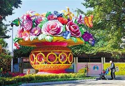 本届迎春花会以追梦为题材,结合中华经典名言、十二生肖“福猪”展开重点构思,展出主题园林景组8座,元宵灯组16座,各类时花、桔果3万多盆,开展园林花卉游园、棋艺书画展览、歌舞曲艺表演、张灯结彩闹元宵等活动。 本届花会采用的精品花卉种类之丰富、数量之庞大为近年之最。除运用了大量桃花、年桔、菊花、大丽花、一品红、大花蕙兰、蝴蝶兰、一串红、凤仙等传统喜庆的年花外,还运用了大量新颖的精品花卉,例如玉堂春、马蹄莲、毛地黄、波斯菊、仙客来、金鱼草、玛格丽特、薰衣草、香水百合、郁金香、天竺葵、角堇等品种。 花会中最瞩目、最美丽的主题灯组当属位于中心广场的《良言耀灯辉》,灯组高近9米,宽8米,气势宏大、喜庆祥和,具有强烈的视觉冲击力。该景组以巨型宫灯为主体,内置走马灯,会360度旋转。 羊城晚报记者 邓勃 何伟杰 通讯员 钟达文 摄影报道