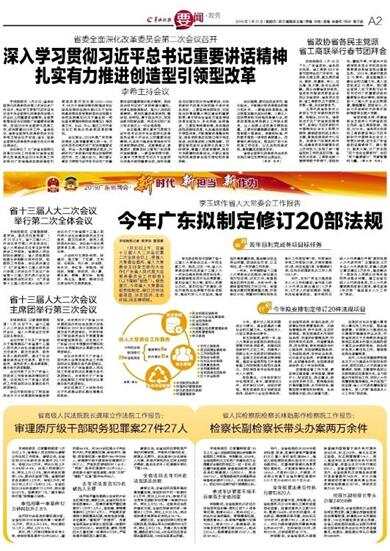 羊城晚报讯 1月30日,省委全面深化改革委员会第二次会议在广州召开,传达学习贯彻习近平总书记在中央全面深化改革委员会第六次会议上的重要讲话精神,全面贯彻落实总书记视察广东重要讲话精神,总