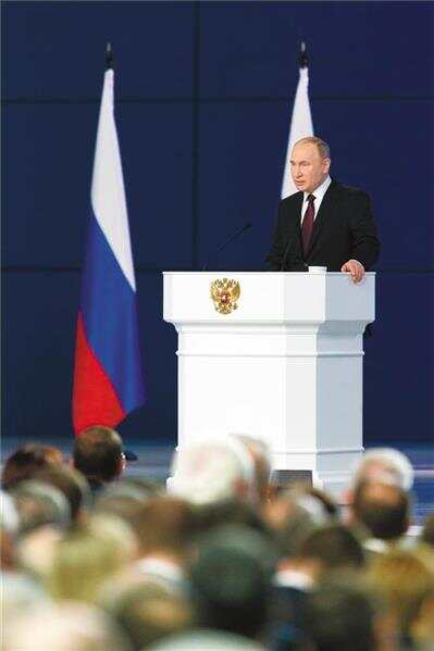 普京向议会上下两院发表国情咨文 新华社发 |