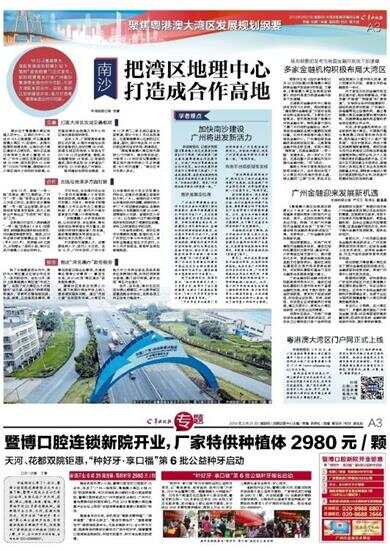 羊城晚报讯 记者许悦报道:《粤港澳大湾区发展规划纲要》(以下简称“规划纲要”)提出要共建粤港澳合作发展平台,打造广州南沙粤港澳全面合作示范区。南沙的发展即将迎来什么样的重大机遇?广东省政