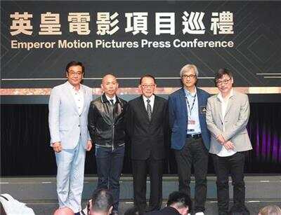 尔冬升、林超贤、杨受成、陈木胜、韦家辉(左起)出席英皇公司巡礼 |