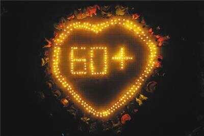居民用蜡烛摆成“60+”标识字样 新华社发