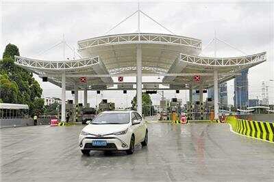 华南快速北行车辆通过出口 羊城晚报记者 汤铭明 摄 |