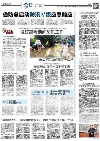 羊城晚报讯 记者许悦、张爱丽,通讯员粤应宣报道:5月23日以来,广东省南部市县出现持续性强降水天气。根据气象部门预测和《广东省防汛防旱防风防冻应急预案》,广东省防总决定于5月27日12时