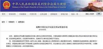 中国驻美国大使馆提醒官网截图 |