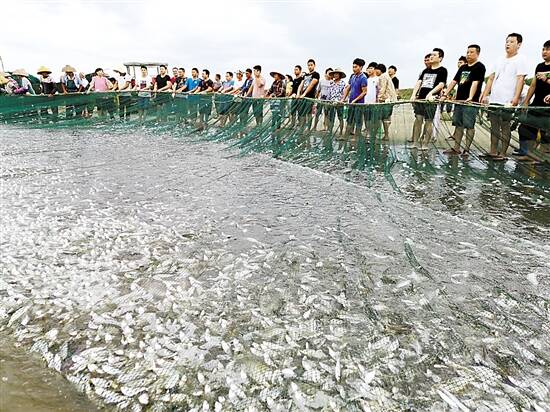 下午,渔民再接再厉,继续拉第二网,同样收获2万斤。当天共捕捞4万多斤。刚捕捞上岸、还活蹦乱跳的海鲜被直接装进大货车,运往市场销售。