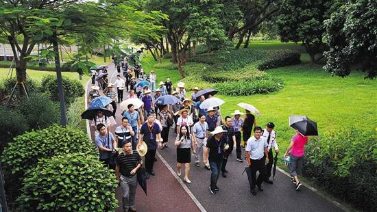 图/羊城晚报记者 王磊 17日,“全国主流媒体社长总编走进大湾区增强‘四力’”采访团兵分两路,其中一路前往深圳中心城区福田,走访了深港科技创新合作区、平安金融中心、香蜜公园、莲花山等标志性地点,深刻感受到福田区作为深圳全市的行政、文化、金融、信息和商务中心,创新活力十足、高端资源集聚的欣欣向荣局面。 福田区是深圳的行政、金融、文化、商贸和国际交往中心,也是深圳高品质发展先锋城区和高端产业集聚区。2018年实现地区生产总值4018亿元,增长7.4%;地均GDP达51.1亿元/平方公里,与新加坡、香港水平相当;人均GDP3.7万美元,达到中等发达地区水平;实现税收总额1688.7亿元,地均税收21.5亿元/平方公里,税收亿元以上楼宇86栋,成为中国“含金量”最高中央商务区。当前,福田正按照深圳“建设先行示范区、创建强国城市范例”的目标定位,加快建设高质量发展的社会主义现代化典范城区。 1 福田印象 经济发展与蓝天白云相得益彰 最新发布的赛迪顾问《2018年中国百强区发展白皮书》,以高质量发展为导向,从经济实力、增长潜力、绿色发展、民生幸福和质量效益等方面筛选了17个指标对各城区的发展情况进行了综合评估,福田区全国排名第三。 福田区云集了145家世界500强企业及分支机构,集聚全市约70%持牌金融总部机构、70%物流总部、50%创投机构,金融业增加值占全市四成以上。国家高新技术企业超过1200家,国家重大科技基础设施“未来网络试验设施”项目、中国(南方)知识产权运营中心、中国国际消费电子展示交易中心等国家级平台落地福田,并获评国家级“双创示范基地”。辖区商事主体达42.1万户(其中企业31.1万户),形成大企业“顶天立地”、中小企业“铺天盖地”的发展格局。福田全年PM2.5均值为23.5微克/立方米(优于欧盟25微克/立方米的环境标准),打造形成了经济发展与“蓝天白云”相得益彰的经济生态体系。 创新福田—— 建更具辐射力科创中心 福田发展引擎中最重要的一环,是以深港科技创新合作区为牵引,大力推进国际科技创新中心建设。 福田区率先出台《深圳市福田区落实<粤港澳大湾区发展规划纲要>行动方案(2019-2020年)》,提出实施“创新福田”跃升行动和深港科技创新合作区领航行动,为建设更具辐射力的科技创新中心保驾护航。深港科技创新合作区领航行动聚焦重点专项任务,全面启动皇岗口岸改造,落地实施一批有力度、有特色、有影响的创新要素跨境流动和区域融通的重大改革举措,与香港携手组建若干标志性重大创新平台。 依托深港科技创新合作区这一重大平台,福田成功推动中科院香港创新研究院、金砖国家未来网络研究院中国分院入驻;已引进或确定入驻的优质科研机构和项目合计70个,包括粤港澳大湾区气象监测预警预报中心、香港生产力促进局深圳创新及技术中心、广东省南方量子科技协同创新研究院等;拟引进或正洽谈入驻的优质科研机构和项目合计57个,包括香港高校提出的33个科研项目、腾讯云创新中心、南开牛津联合研究中心。 金融福田——全国三大金融强区之一 除了科技创新,福田金融业发展的含金量也很高。2018年福田区实现金融业增加值1331.99亿元,占全市金融业增加值的43.4%,占全区生产总值的33.2%。福田集聚了全市70%以上的银行、证券、基金、期货、信托、保险等持牌金融机构、50%以上的创投机构、60%以上的会计师事务所、律师事务所。深圳证券交易所、银保监局、证监局,世界500强平安集团、招商银行等均坐落于辖区内,高端要素集聚,金融核心区优势地位稳固。作为全国三大金融强区之一,福田已构建起业态丰富、创新活跃、功能完善的现代金融产业体系。 当前,福田区全面贯彻落实粤港澳大湾区战略和深圳市委市政府的决策部署,对标“曼哈顿+硅谷”,重点规划建设香蜜湖新金融中心、引进持牌金融机构总部、抢抓金融科技发展机遇,抢先布局,打造生态,形成金融科技扎堆集聚态势,为助力深圳打造成为连同港澳、服务全国、辐射亚太、影响全球的更具竞争力的区域性“国际金融中心”出硬招实招。 百园福田——牢固树立绿色发展理念 当然,经济发展与生态文明建设相得益彰,福田区近年来牢固树立“绿水青山就是金山银山”的绿色发展理念,2011年就入选全国首批国家生态区。福田还首创多项生态文明建设体制机制和发展方式,比如探索构建了全国首个中心城区生态文明核算体系。当前,福田区正稳步推进国家生态文明建设示范区创建工作开展,努力做好生态文明建设这篇大文章,让福田人享受最好的生态福利。 记者了解到,作为深圳中心城区、高度建成区,福田区人口密集、空间紧张,为不断满足市民群众对良好的城市生态环境的追求,着力打造“百园福田”,建设“公园里的城市中心区”,助力福田区高质量建设社会主义现代化典范城区。去年,福田区就高标准推进市中心区诗书礼乐四园、植物学大会纪念园等14个特色公园建设,辖区公园总数达123个。 全区共有河流5条(9个断面)纳入监测,主要河流水质有所改善,深圳河河口断面年底达到地表水V类标准,为近37年来最佳水质。福田河水质全河段平均综合污染指数下降49.4%,水质稳定达到地表水IV类标准。3个黑臭水体实现不黑不臭,福田河黑臭水体综合整治成果是全市唯一一个荣登全国城市黑臭水体整治光荣榜