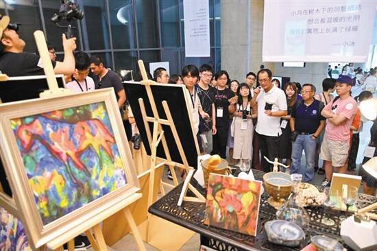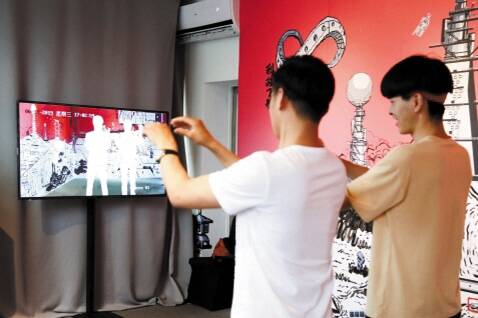 观众在参与李元素的《南京西路风格迁移》AI作品现场互动