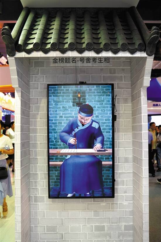 而在商汤科技和故宫合作的“金榜题名”展区,你只要作个揖,就能“穿越”到古代和孔夫子互动合影,还能利用人脸识别技术“变身”为进京赶考的秀才,参加一回古代的科举考试。