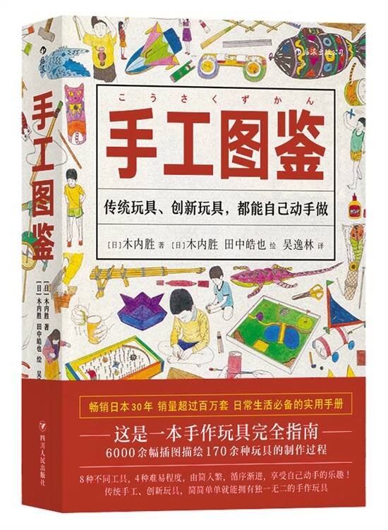 制图/夏学群 丰子恺说:“儿童大多都是最富于同情的。且其同情不但及于人类,又自然地及于猫犬、花草、鸟蝶、鱼虫、玩具等一切事物,他们认真地对猫犬说话,认真地和花接吻,认真地和人像(doll)玩耍,其心比艺术家的心真切而自然得多!他们往往能注意大人们所不能注意的事,发现大人们所不能发现的点。所以儿童的本质是艺术的。” 手工,顾名思义,就是依靠双手制作完成的物品,可以简单地理解为DIY。说起手工,第一个想到的国家就是日本。在日本的学校里,早早就设有家政课,其中包括缝纫、木工等手工技能,有意识地从小培养孩子的动手能力和艺术创造力。 每年,日本校园的文化活动“学园祭”的时候,学生们都需要自己策划活动、布置展场、表演节目,这时候平时边玩边学的手工技能就派上大用场了。正因为从小耳濡目染,日本拥有大量的手工迷。模型、羊毛毡、木工、折纸,这些全年龄向的手工,受到全日本手工爱好者的追捧。在日本还有很多手工制作专门店,会售卖各种手工制作材料、手工工具以及手工图书。无论是孩子,还是成年人,都可以在日本充分享受手工带来的乐趣。 深入教学理念里的手工能力,为什么被列为如此重要的一环呢?艺术家丰子恺曾说过:“儿童大多都是最富于同情的。且其同情不但及于人类,又自然地及于猫犬、花草、鸟蝶、鱼虫、玩具等一切事物,他们认真地对猫犬说话,认真地和花接吻,认真地和人像(doll)玩耍,其心比艺术家的心真切而自然得多!他们往往能注意大人们所不能注意的事,发现大人们所不能发现的点。所以儿童的本质是艺术的。” 所以,每一个孩子都是天生的艺术家!手工是极有效果的一种发掘艺术才能的方式。在孩子自制手工玩具的时候,会逐渐形成自我的审美能力和造型能力。儿童时期是艺术启蒙的重要阶段,手工则是开启艺术之门的一把钥匙。 这个观念不仅在日本,欧美国家也一样非常认可。只要敢想就能去做的手工,老师和家长会协助孩子共同完成。 在中国,很多私立学校里已经开始尝试这种寓教于乐的学习方式。众所周知,中国学生的学习成绩在世界排名数一数二,几乎可以算得上是最好的,但是动手能力却远远赶不上学习成绩。有很多孩子过早地背负了学习压力,没有玩玩具、做玩具的时间,甚至不被允许玩乐。长大后,当被问到“你有什么兴趣爱好?”“你擅长什么?”的时候,很多人才猛然发现,小时候在玩乐时产生的兴趣,完全被忽视了。 如果,你想和孩子一起做出独一无二的玩具,或者仅是想找回童年的快乐,不妨看看这本畅销日本30余年,销量超过百万册的手作玩具完全指南——《手工图鉴》。全书用6000余幅插图描绘170种玩具的制作过程,这里有经典的传统玩具七巧板、纸飞机、回力镖的制作方法,也有弹珠拉力赛、惊奇望远镜、筷子单杠人偶等创新玩具的制作教程。它不仅有玩具制作指南,还分为8种不同工具和4种难度等级。你可以根据自己手头上的工具,来决定从ABCD那个难度开始。 值得一提,书中涉及的170种玩具所用素材,都是身边唾手可得的常用材料,废纸盒、易拉罐、塑料泡沫、吸管、牛奶盒,等等,二次利用旧物改造,特别环保! 亲手做出世界上独一无二的玩具,是一件多么让人骄傲的事情!正如书中所写:动手做的过程,就是很好玩的游戏,即使手艺较差的人也不用担心。做得好不好或做得快不快并不重要,做自己喜欢的东西,玩的过程开心,这才是做手工玩具最大的乐趣!