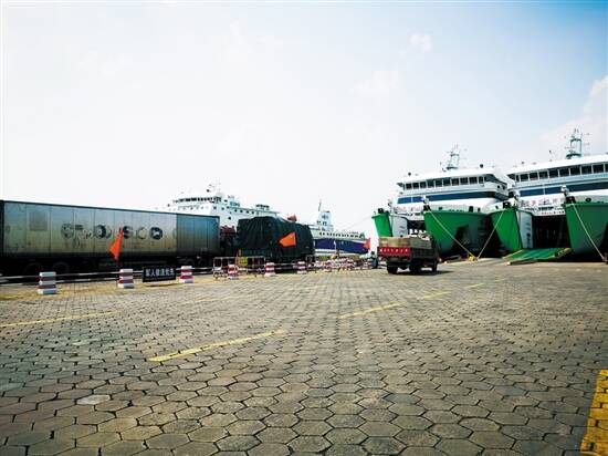 在港口等待过海的车辆 |