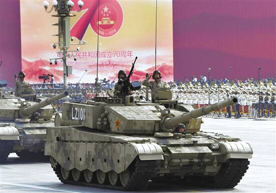 15个徒步方队,受阅时长约13分钟。东西华表间短短的96米,受阅官兵以每分钟116步的速度、75厘米的步幅、1.2米的间距,正步行进128步。 沿着先辈的足迹,踏着胜利的节拍,仪仗方队护卫着党旗、国旗和军旗,威武雄壮地通过天安门。 党旗、国旗、军旗迎风飘扬,首次“同框”经过天安门接受检阅——人民军队永远是党领导下的军队,永远是国家的捍卫者,永远是社会主义的捍卫者,永远是人民利益的捍卫者。 迈着铿锵的正步,首次亮相的领导指挥方队阔步走来。这是一个改革强军、联合作战指挥印记最鲜明的方队——队员从军委机关15个部门和各战区、军兵种机关、武警部队抽组而成,包括27名将军,平均年龄38岁,年龄最大的59岁。 领导指挥方队创造了两个第一:人民军队阅兵史上第一个从领导指挥机构抽组的方队,第一个由将军组成第一排面的方队。 穿过战争与和平的峥嵘岁月,肩负新时代的使命任务,陆军方队、海军方队、空军方队、火箭军方队、战略支援部队方队、联勤保障部队方队和武警部队方队以排山倒海之势相继走来,接受祖国和人民检阅。 以“铁脚板”著称的步兵,曾是人民军队的主体。与共和国共奋进,人民军队已经由过去单一军种的军队发展成为诸军兵种联合的强大军队,由过去“小米加步枪”武装起来的军队发展成为基本实现机械化、加快迈向信息化的强大军队。 方阵如山,气贯长虹。女兵方队、院校科研方队、预备役部队方队、民兵方队、文职人员方队阔步前行,展现了人民军队威武之师、文明之师、和平之师的良好形象。 清新的色彩丛中,突然加入一抹斑斓的迷彩——徒步方队中唯一迷彩着装的维和部队方队接受检阅。作为徒步方队最后出场的方队,维和部队方队是人民军队阅兵史上首次以海外维和力量为主组建的方队,彰显了新时代中国军队维护地区与世界和平的责任与担当。 恢宏激昂的阅兵式号角骤然响起,激昂澎湃的分列式进行曲汇成震天撼地的交响—— 10月1日上午,喜悦的豪情在北京天安门广场倾情绽放,新中国以一场盛大阅兵庆祝70岁生日。 中共中央总书记、国家主席、中央军委主席习近平在天安门城楼发表重要讲话并乘车检阅受阅徒步方队和装备方队后,气势磅礴的阅兵分列式拉开序幕。 响彻云霄的轰鸣声中,9架直升机护卫着党旗、国旗和军旗,20架直升机飞成“70”字样,以雷霆万钧之势率先从天安门广场上空飞过。 辉煌70年,奋进新时代。在中国共产党的坚强领导下,中国发生历史性变革、取得历史性成就,中国特色强军之路越走越宽广。秋日长空下,三面红旗格外醒目,“70”字样分外耀眼。 激昂的旋律中, 铁流滚滚,气势如虹—— 32个装备方队以崭新阵容接受检阅。一辆辆坦克披坚执锐,一枚枚导弹昂首向天,展示着这个由580台(套)地面装备组成的钢铁巨阵所向披靡的气概。 军乐声声,战旗猎猎。行驶在装备方队最前面的是战旗方队。在五大战区指挥员引领下,猛士敞篷车载着各个历史时期涌现出的100面荣誉战旗徐徐驶来——战旗是荣誉的象征,是胜利的标志。 车轮滚滚,大地震撼。紧随其后的99A式坦克方队呈箭形布阵,象征着“陆战之王”勇往直前。 44岁的坦克方队头车驾驶员、一级军士长丁辉,已是第5次参加阅兵。他说:“这些装备中,不少是第一次公开亮相。” 置身阅兵现场,北京市建筑设计研究院副总经理郑实印象最深的,是一支支新型作战力量的全新亮相——信息作战模块,无人作战模块…… 观礼嘉宾把如潮的掌声、崇高的敬意献给隆隆驶来的“大国重器”——东风-31甲改核导弹、巨浪-2导弹、东风-5B核导弹、东风-41核导弹…… 备受关注的东风-41核导弹方队通过天安门时,不少人流下激动的泪水。作为我国战略核力量的中流砥柱,它以凛然的气势和庞大的体形,在世界面前首次亮相。 大国长剑,威震苍穹。从常规导弹到核常导弹,从中程导弹到洲际导弹……火箭军慑战能战止战胜战的战略制衡能力显著增强,为共和国筑起坚不可摧的和平盾牌。 激昂的旋律中,雄鹰突击,雷霆万钧—— 随着呼啸而至的轰鸣声,观礼嘉宾不约而同地仰望长空——气势恢宏的空中梯队来了。 率先飞过的是多机编队的领队机梯队,带队长机是空警-2000预警机,八一飞行表演队8架歼-10战机护卫两翼。 预警机、运输机、轰炸机、加受油机、舰载机、歼击机……11个空中梯队以“米秒不差”的精准飞行,分别呈楔形、三角形、菱形等编队队形飞过天安门广场上空。 第一次亮相的轰-6N牢牢吸引着人们的目光。这是一款国产新型远程战略轰炸机,可以进行空中受油,能够实施远程奔袭、大区域巡航、防区外打击,标志着空军战略威慑和战略打击能力全面提升。 教练机梯队从天安门广场上空掠过,划出7条美丽彩带,向祖国母亲献上诚挚的生日祝福。 “强国必须强军,军强才能国安。”此情此景,令观礼嘉宾北京师范大学国际写作中心总干事苗绿感慨万千,“中华民族百年兴衰史昭示:一个巩固的国防,一支强大的军队,始终是国家繁荣富强、人民安宁幸福的可靠保证。” 古老沧桑的中华民族,久经风雨的伟大祖国,在这场举世关注的阅兵盛典中焕发出胜利与自豪的荣光。 本版文图/新华社 制图/ 陈健怡
