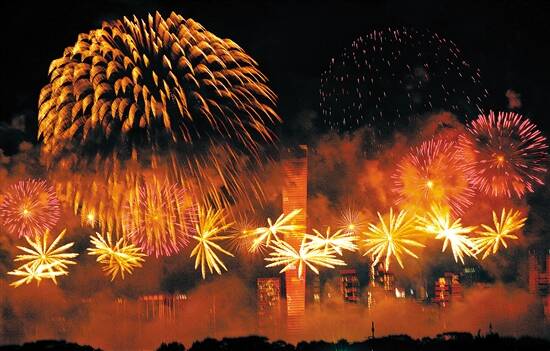 广州 用最璀璨焰火为祖国母亲献礼 羊城晚报讯 记者黄宙辉、鄢敏、李志文,通讯员穗府信报道:10月1日晚,以“讴歌新时代,共圆中国梦”为主题的广州市庆祝新中国成立70周年焰火晚会,在广州琶洲会展中心对出珠江江面举行。珠江水面上,4艘燃放船与5个燃放浮台呈一字排开,共有13.8万发焰火伴随着音乐绽放,历时25分钟,打造成宽1200米、高300米的壮丽焰火画面。 晚上8时,随着慷慨激昂的管弦乐《红旗颂》奏响,焰火晚会拉开序幕。火红的礼花在珠江上空组成了数字“70”的造型,艳丽的牡丹在百米高空热烈绽放。江面上“祖国万岁”的美好祝语,凝聚了广州人民对祖国的深情祝福。 本次焰火晚会,共分为“光辉的历程”、“伟大的成就”、“欢腾的珠水”、“逐梦新时代”四个篇章。焰火造型绚丽多姿,呈现五星闪耀、牡丹绽放、跨越彩虹等造型,展示象征“一带一路”、欢乐笑脸、绿水青山、南国椰影等画面,渲染出“云山珠水、吉祥花城”的特有风情。 昨晚有10万市民在天河、海珠区的四个观赏区观看焰火晚会,另有超过100万市民在观赏区外围、焰火燃放可视范围内观看焰火晚会。 暨南大学大四学生叶炜麟来自澳门,上午全程看了国庆阅兵直播,晚上又来看焰火晚会。“祖国越来越强大,身为中国人我感到无比自豪和骄傲。”他说,完成学业后,他希望在粤港澳大湾区工作,为大湾区贡献自己的力量。 市民左先生一家4口第一次一起出来看焰火晚会。“焰火很漂亮,很震撼!”左先生说,“在国庆节这个特别的日子里,希望国家越来越强大,人民越来越富足。” 烟花秀、激光秀祝福祖国万岁 深圳 羊城晚报讯 记者沈婷婷、郭起报道:10月1日晚8时,由深圳市委、市政府主办的庆祝中华人民共和国成立70周年大型焰火晚会在深圳湾上演。 当晚,深圳湾畔烟花腾空、星空璀璨。随着序曲《我和我的祖国》的优美乐声,“祖国万岁”主题焰火晚会正式拉开序幕。晚会以深圳湾人才公园的山、海、湖及城市建筑群为代表的城市实景作为广阔舞台,分为序曲及五个篇章进行表演。当晚共发射16万发烟花。 晚会的第一篇章《壮丽七十年》通过大型烛光“生日蛋糕”、四个层次立体“70”数字,表达深圳对新中国的生日祝福。第二篇章《奋斗新时代》展现了中国速度、深圳活力。第三篇章《礼赞新中国》以红色焰火为主调,“祖国万岁,人民万岁”的特色烟花礼赞祖国。第四篇章《先行示范区》展示了深圳肩负建设中国特色社会主义先行示范区的新使命。最后一个篇章《共筑中国梦》中,烟花、灯光秀、激光秀的联动表演,共同祝福伟大祖国更加繁荣昌盛。 据悉,此次焰火表演燃放阵线总长1.5公里,最高画面高度达300米,可视范围达到5-10公里。焰火表演设计结合地形,上演了湖面烟花、4D立体烟花、桥体烟花、高空特色烟花等,是深圳近期举办的规模最大、燃放级别最高的焰火表演。 近17万发焰火照亮珠澳夜空 珠海 羊城晚报讯 记者吴国颂、郑达报道:10月1日晚8时,珠海在拱北湾举行庆祝新中国成立70周年焰火晚会。晚会以“筑梦湾区映初心 花开珠澳颂中国”为主题,不仅囊括了焰火表演,还有激光表演、灯光表演。现场观看人数达40余万人。 10艘大型焰火船搭载16.9万发礼花弹,在拱北湾海域一字排开;情侣南路2公里沿线共安装了约2000只各类灯具;情侣南路4公里沿线的800多个音响设备通过光纤实现信号连接。当晚的焰火晚会借助港珠澳大桥为背景,焰火、灯光、音乐相互呼应。 焰火秀第一篇章《中国心——波澜壮阔创伟业》中,“五角星”造型焰火闪耀夜空。第二篇章《湾区情——唇齿相依携手行》以花蕊、蝴蝶、花朵等浪漫造型为主,歌颂珠澳情谊。第三篇章《人民赞——不忘初心向未来》不仅采用了具备多种变化方式的烟花,还穿插特殊造型的礼花燃放,为祖国生日献礼。 晚会的焰火总设计师汤小刚介绍,当晚燃放的焰火数量达16.9万发,其中高空礼花弹1.4万发,中低空礼花弹15.5万发。“这次焰火表演规模是珠海建市以来最大的。” 此次焰火表演还结合了灯光秀进行立体展演。灯光总设计贾鹏飞介绍,“晚会中投入使用的‘激光光源大型光束灯’为最新研发,也是该产品首次在户外大型活动中使用。” 制图/范英兰