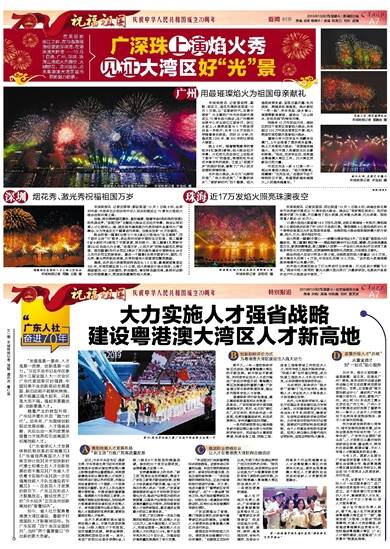 在美丽的珠江之畔,在与香港隔海相望的深圳湾、在港珠澳大桥旁……10月1日晚,广州、深圳、珠海三地焰火齐腾空,火树银花,流光溢彩,点亮粤港澳大湾区城市群的魅力前景。