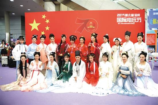 第六届深圳国际电玩节特设“新中国成立70周年动画回顾展”,展现动画领域辉煌成就,时尚青年们与国旗同框留影 羊城晚报记者 王俊 摄 |