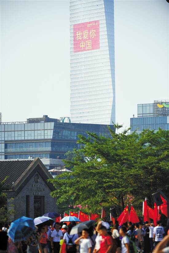 10月2日,深圳街头的国庆气氛从地面延伸到天空 羊城晚报记者 周巍 摄 |