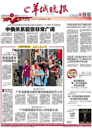 羊城晚报讯 记者吴珊、通讯员徐伟跃报道:10月1日上午看完国庆大阅兵后,不少广州市民开启了七天黄金周之旅。记者了解到,很多老广选择了“旅游+乡村”“旅游+红色”的主题游览,以特别的方式庆