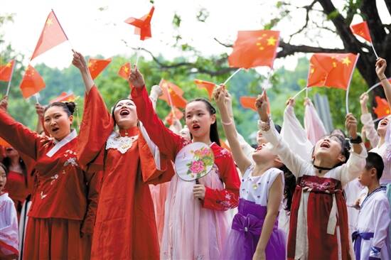 东莞,换上汉服穿越古今,为祖国喝彩 羊城晚报记者 余晓玲 摄 |