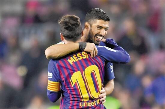 梅西和苏亚雷斯(后)组成巴萨新“MS组合” 图/视觉中国 |