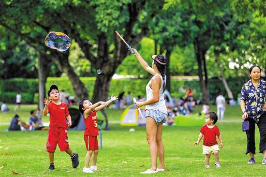 4日,不少广州市民拖家带口在二沙岛绿地享受国庆假期,欢声笑语在草地间此起彼伏 羊城晚报记者 宋金峪 摄 |