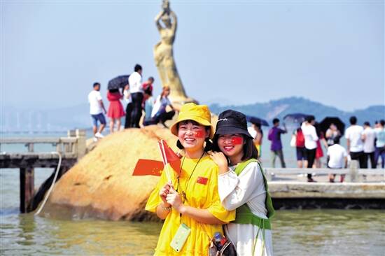 珠海处处洋溢着浓厚的节日氛围,珠海渔女景点游人如织,游客们沉浸在欢乐的国庆气氛中 羊城晚报记者 汤铭明 摄 |