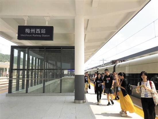 羊城晚报讯 记者马灿摄影报道:梅汕高铁今日开通!10日,羊城晚报记者搭乘梅汕铁路试运行列车体验了这条新线路。10日中午,记者登录12306官网看到,广州至梅州西的梅汕线新增车次已经开始售票。12306网站显示,分别有广州东和广州南出发到梅州的列车,广州出发最快3小时25分到达梅州。 广州到梅州节省3个小时 10月11日,梅汕铁路正式开通运营,“世界客都”梅州将结束不通高铁的历史。记者了解到,每天将有44趟动车组列车往返于梅州至广州、深圳、汕头、珠海、宜昌、厦门等地,梅州至广州、深圳最快仅需3小时25分钟和2小时52分钟。 据悉,在梅汕铁路通车前,广州到梅州只能搭乘普铁,需花费6小时30分钟;开通后,广州到梅州最快只需3小时25分钟,全程节省3小时5分钟。 10日,记者搭乘梅汕高铁试运行列车。梅汕高铁正线全长122.4公里,线路设计时速250公里,线路北起梅州市梅州西站,途经梅州、揭阳、潮州三市,在潮汕站与厦深铁路接轨,全线设梅州西、畲江北、建桥、丰顺东、揭阳、揭阳机场、潮汕站7个站点。 全程均可刷手机进站 记者在梅州西站下车后走入候车厅,看到候车厅十分宽敞,据了解,梅州西站建筑面积12000平方米,候车室面积7109平方米,最高聚集人数1500人。深圳北站梅州西车间工作人员罗傧告诉记者,梅汕铁路是广东省内继广珠城际、江湛铁路之后第三条试点电子客票的线路,沿线7个车站均为实施电子客票的试点车站。在梅汕铁路开通运营首日,电子客票系统将同步投入使用,乘车区间在以上7个试点车站范围内的旅客,通过12306网站或手机App购票后,不再需要换取纸质车票,可直接通过“刷手机”或“刷身份证”进站乘车,旅客购票、进站将更加方便快捷。 记者留意到,梅州西站候车室两边的两个厕所门前有一台液晶显示器,上面显示着男女厕所厕格的空位数。记者走进厕所,发现每个厕格门都有个电子屏,有人如厕时电子屏会显示红色有人的字样,让人一目了然。据了解,这是梅州西站启用的智慧卫生间系统。 途中,记者分别在揭阳机场站、揭阳站、建桥站下车,沿途风光旖旎。从潮汕站上车到梅州西站,试运行时间大约1小时,等正式开通后,用时约40分钟。