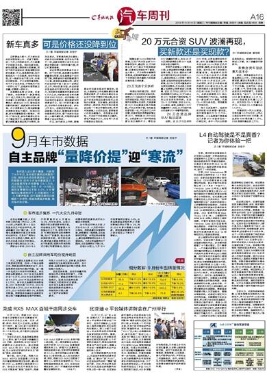 9月车市数据 自主品牌“量降价提”迎“寒流”