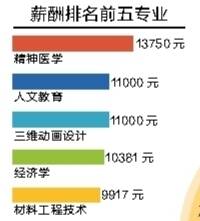 抛开学历,仅从专业方面来分析,精神医学、人文教育、工程设计类专业普遍薪酬较高。其中精神医学专业平均达到13750元的高薪。人文教育、三维动画设计、经济学、材料工程技术等专业的薪酬都达到了10000元左右。