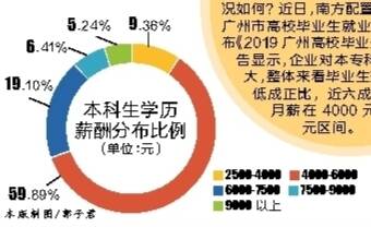 又到10月求职季,稳定就业是经济发展的重中之重,也是最大的民生。2019年全国普通高校毕业生预计834万,比2018年多出14万。大学生就业一直受到各方关注,那么,今年广州高校毕业生的招聘需求情况如何?近日,南方配置大数据中心联合广州市高校毕业生就业指导中心联合发布《2019广州高校毕业生需求报告》。报告显示,企业对本专科毕业生需求最大,整体来看毕业生薪酬与学历高低成正比,近六成本科毕业生月薪在4000元-6000元区间。