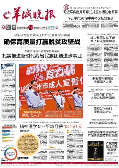 1957年10月1日创刊 2019年10月18 30℃ 21℃ 星期五 己亥年 九月二十 责编/赵鹏 李志文 美编/郭子君 校对/林霄 报料热线:(020)114转