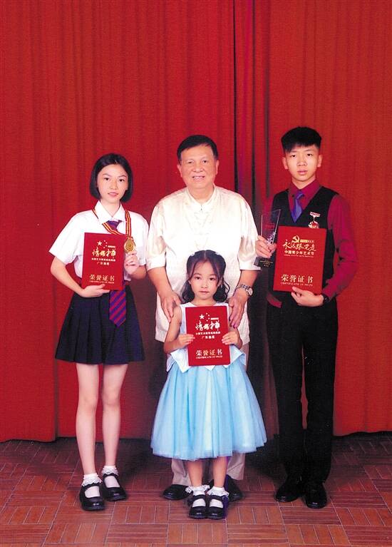 第14届“永远跟党走”中国青少年艺术节近日在北京落下帷幕。有“中国卓别林”之称的岭南魔术大师何其昌的弟子成绩突出。 其中,五岁的夏诗雨在南方赛区夺得幼儿组一等奖。小小年纪的她表演小魔术《五彩缤纷》有板有眼,逗得评委开怀大笑。少年组的何祉霏表演手法娴熟、投入、老练,勇夺南方赛区少年组一等奖。 少年A组的邓奇龙更厉害,他代表南方赛区到北京参加中国青少年艺术节的总决赛,并以“变色的水”“可乐分身”“魔瓶”等节目征服了现场评委,最终斩获全国魔术少年A组一等奖。 当大家竖起大拇指赞扬何其昌时,他谦虚地说:“不忘初心是我的心愿,我的师傅培养了我,我要继承师傅的心愿培养更多的人才,让岭南魔术发扬光大。” (念慈)