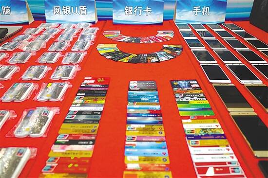 “猎狐2019”专项行动查获的一批经济犯罪工具 羊城晚报记者 宋金峪 摄 |