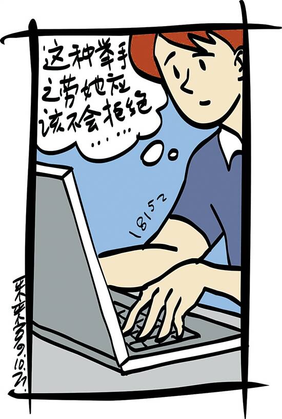 柳士帅出差来到这座城市,坐了十多个小时的火车累得直不起腰,下了火车就被早就联系好的宾馆来车直接拉到了宾馆。看看手表,已经是傍晚七点多,柳士帅对此地人生地不熟,平日他都要买上几注彩票,可今天他怕出去一时找不到售卖彩票的地方而误事,便拿起手机给女友打电话,想让女友帮自己买几注。电话拨打过去,先是发出“嘟”的一声,然后出现语音提示:“你所拨打的电话暂时无法接通。” 柳士帅想,前几天和女友吵架,女友提出分手,之前他总认为是女友在耍小脾气,过几天哄哄她就好啦,可今天电话出现这种声音,会不会是女友把他的电话拉入了黑名单。他又试着给女友发微信,同样也是发不过去,他这才确认,是女友把自己的电话拉黑了,就连他的微信也删除了。 不过,柳士帅想,毕竟恋爱了两年时间,就算女友真的铁了心要和他分手,帮他买几注彩票这种举手之劳的事应该不会拒绝,而且,女友所在的小区门前就有一家彩票投注站。他记得女友曾经说过,她的电子邮箱是名字的拼音字母,而且电子邮箱和手机绑定,只要接收到电子邮件,手机上就会立刻显示。 邮件写好了,可他没想到的是,一不小心把女友张宁电子邮箱的拼音字母中的“宁”的拼音“ning”误写成了“ling”,然后就点击了发送。 (杨进峰)