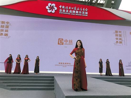 此次丝绸整体宣传活动主题为“中国丝绸 联结世界”,将通过静态展览展示、丝绸时装秀和中国丝绸创新发展研讨会等形式,向国内外展示中国丝绸的高端面料和前沿设计,提升中国丝绸的辨识度和品牌力,弘扬丝路精神,传承丝绸文化,促进产业融合发展。 静态展示位于广交会展馆A区珠江散步道入口处,展览面积共206平米,共有来自21家中国丝绸品牌企业的700余件丝绸展品参展,同时设置洽谈及综合活动区,为参展商、采购商交流合作提供便利。 活动期间共举办4场丝绸时装秀,清君华服、苏州上久楷、广东丝丽、江苏华佳、中丝集团等多家企业通过不同设计风格的丝绸服饰走秀,以最直观的方式向观展者展示中国传统丝绸文化和最新潮流设计(上图)。 记者了解到,在转型升级的大背景下,中国丝绸企业2015年攻破了人工饲料工厂化养蚕的技术壁垒,2018年,该企业年产一万吨鲜茧的全龄人工饲料工厂化生产车间正式投产,提高了劳动生产率,并能保证优质稳定的蚕丝质量,为中国丝绸提供了新的发展方向。 在面料花纹研制方面,有企业基于纺织技术和数学建模整合,研发了大自然模拟纹理,并尝试将丝绸文物“数码化”,创新设计技术与工艺解决方案,让中国传统元素和纹样进一步与丝绸相结合,传承中国文化。