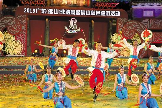 羊城晚报讯 记者景瑾瑾、周哲摄影报道:生动活泼的舞狮、精妙绝伦的飘色、璀璨绚丽的彩灯……11月1日晚,2019广东(佛山)非遗周暨佛山秋色巡游活动拉开帷幕,吸引了众多广佛市民及外地游客前来观赏。 活动由广东省文化和旅游厅、佛山市人民政府主办,其中的重磅项目秋色巡游于1日、2日连续两晚在祖庙历史文化街区举行。“秋色”是佛山的传统民俗活动,也是国家级非物质文化遗产项目,有600多年历史。从2016年开始,秋色巡游活动与广东(佛山)非遗周结合举行。 今年的秋色巡游共有45个表演项目、8辆彩车参与。特别邀请上海、浙江嘉兴、江西井冈山、江西瑞金、贵州遵义、陕西延安、河北西柏坡、北京八个地区表演节目,组成“礼赞新中国”方阵。同时,来自粤港澳大湾区与省内其他地市、泛珠三角以及佛山国外友城和国内对口帮扶与合作城市的精彩演出也均参与巡游。