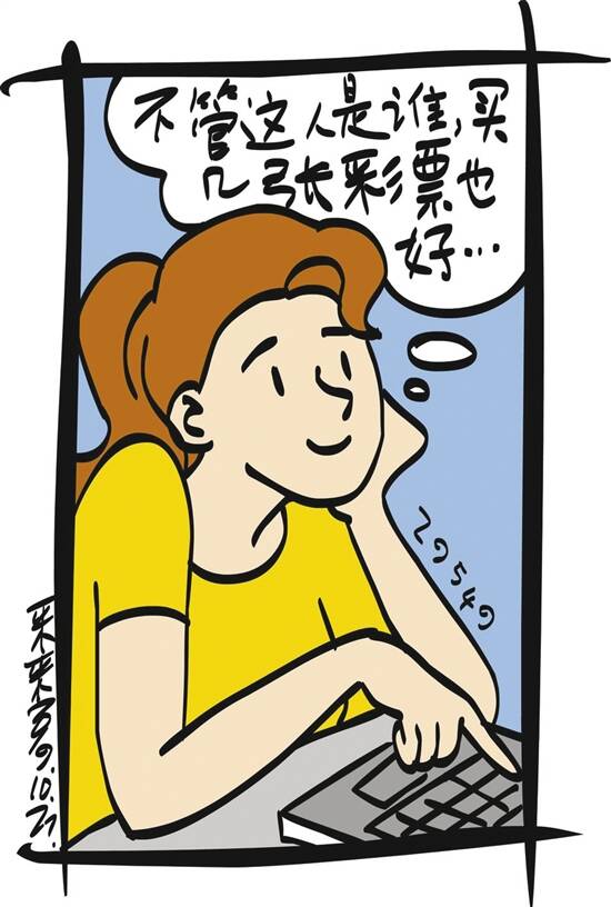 彩民故事 插图 采采 柳士帅邮件发出去后,却被另一座城市一个叫张姈的姑娘收到了。张姈正在悲痛中,因为她的男友刚刚生了重病,张姈听到手机“嘟”响了一声,她揉了揉哭得红肿的眼睛接收了邮件。 邮件中写道:“亲爱的,我太爱你了,不想与你分手,请让我一生一世保护你吧。今天我到了这里,住的地方特别好,室内有电视、电脑,卫生间可洗浴,房间卫生特别好,服务员的服务热情周到,请别牵挂。另有一事相求,请帮我买五注同号的彩票,号码是……,若中了奖,奖金你要多少给你多少。”邮件的落款是:“永远爱你的人。” 看完邮件,张姈又好气又好笑。心想“不管这人是谁,买几张彩票也好,或许正好能转转运。”张姈所住的小区门前就有一家彩票投注站,她按照邮件上的号码买了五注彩票。 夜里,张姈看着电视开奖直播,发现那五注相同号码的彩票中了二等奖,就连忙照着发来邮件的邮箱回了一封邮件说:“你好,你交代我买的五注彩票我买了,全部中了二等奖,既然是帮你买的,我会归还你。我要告诉你,我不是你亲爱的,只是你的邮件发错了人,被我收到了。恭喜你中奖。”邮件落款中,张姈留下了自己的姓名和联系电话。 (杨进峰)