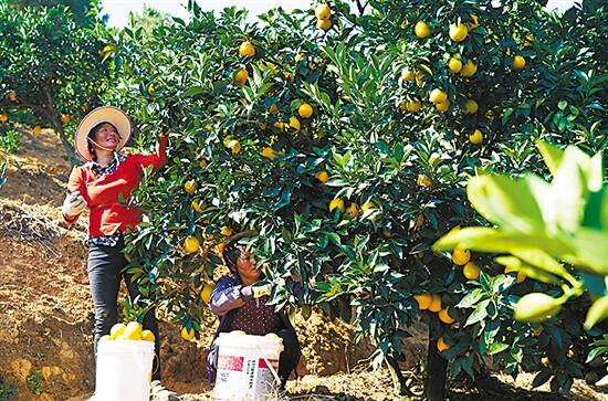 近日,江西省寻乌县的脐橙迎来采摘期,果园一派繁忙景象 新华社发 |
