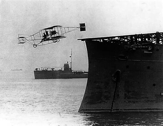①美国飞行员尤金·埃利驾驶飞机在“伯明翰”号巡洋舰上成功起飞 摄于1910年11月14日 |