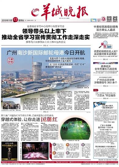 1957年10月1日创刊 2019年11月17 星期日 23℃ 16℃ 己亥年十月廿一 责编/袁婧 朱帆 美编/李焕菲 校对/潘丽玲 报料热线:(020)114转羊城晚