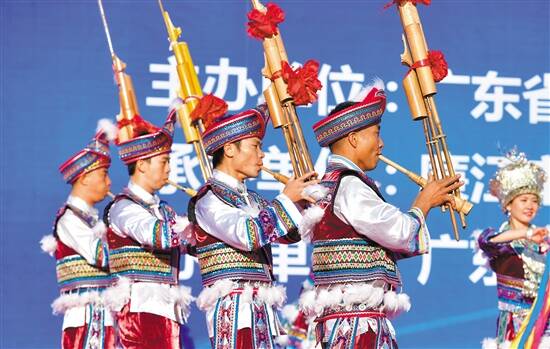 12月7日,演员在廉江红橙节暨家电博览会开幕式上吹芦笙 |