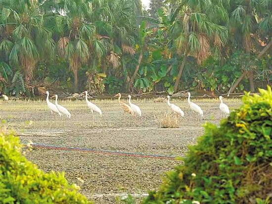 羊城晚报讯 记者张爱丽、通讯员林荫摄影报道:近日,群众反映有以前没有见过的候鸟来到了广东省江门市新会区三江镇沙仔场社区。经广东省林业局组织的专家现场核查,确认该区域的9只候鸟为国家一级保护野生动物白鹤。 珠海市观鸟协会会长郭竣工介绍说,12月8日,江门市新会区的会员发现有一群以前没有见过的候鸟。12月11日,经她现场辨认,初步确定是国家一级保护野生动物白鹤。于是她马上向广东省林业局汇报。 得知这一情况后,广东省林业局马上组织专家等前往沙仔场社区。在一片莲藕塘里,发现了9只美丽优雅的白鹤正在觅食。 据广东省生物资源应用研究所助理研究员张敏介绍,这是广东省历史上首次观测记录到白鹤,有8只成鸟1只幼鸟。 据介绍,全球的白鹤仅存4000多只,被世界自然保护联盟评估为极危物种,在我国列为国家一级保护野生动物。白鹤夏天在北极圈西伯利亚苔原进行繁殖,然后沿西、中、东三条线路进行迁徙。目前,白鹤的迁徙主要集中在东线,中、西两条线路都很少观测到。白鹤的主要越冬地是我国的鄱阳湖,这9只白鹤往南多飞800多公里到达新会区,极为罕见。 近年来,广东对野生动物资源的保护力度不断加大。仅在今年,广东在全省范围内开展了秋冬季严打破坏候鸟等野生动物资源违法犯罪的专项行动,广东省林业局还与多个非政府组织合作开展宣传活动。