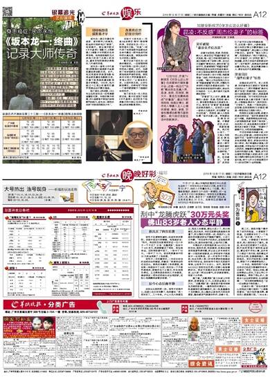 羊城晚报记者 李丽 曾获奥斯卡最佳配乐奖的日本音乐大师坂本龙一,其作品曾通过各种途径进入并征服我们的耳朵。12月16日,以他为主角的纪录片《坂本龙一:终曲》登陆全国艺联专线。这一次,人们有机会在音乐之外,走近这位大师的人生。 值得一提的是,该片特别制作了DTS:X临境音版本,为观众带来沉浸式的观影体验。 明明有颜值 偏要靠才华 坂本龙一是日本著名作曲家、音乐制作人和演员,粉丝亲切地称他为“教授”。他极高产,曾出演并配乐《末代皇帝》等影片,《荒野猎人》等影片中的配乐也非常惊艳。他凭借极强的艺术表现力收获了无数人的耳朵,富有灵性的旋律仿佛能注入听者的灵魂。 坂本龙一曾凭《末代皇帝》获得第60届奥斯卡金像奖最佳原创配乐奖。此外,他还两度斩获美国电影电视金球奖最佳电影配乐奖,并拿下格莱美奖最佳影视器乐专辑奖。1992年,他为超过十亿观众收看的巴塞罗那奥运会开幕式谱曲。 除了音乐上的成就,1952年出生的坂本龙一还凭高颜值圈粉无数。年轻时高冷孤傲,如今虽青春不再但仍保持朝气和活力,坂本龙一被网友戏称“帅到老的银发少年”。 身患绝症后 仍坚持创作 纪录片《坂本龙一:终曲》由史蒂芬·野村·斯奇博执导,讲述坂本龙一引人入胜的音乐之路。“终曲”一词代表了他将每部作品都当成生命中最后一部作品进行创作的认真态度,展现其对待艺术的匠人精神。 影片记录下坂本龙一在确诊癌症后,一边困难地咽下治疗药物一边用心完成工作的动人画面;此外,也捕捉了他专程前往北极寻找最原始纯净声音的旅程,展现其对永恒之声的真挚追求。有观众评价:“从福岛到北京,从纽约到北极,从劳伦斯到溥仪,仿佛他写下的每一个音符都被赋予了超越时空的伤怀。” 除了坂本龙一本人的生活记录,影片还呈现了包括《末代皇帝》在内的多个经典影片的片段以及乐队现场演出的珍贵影像资料。